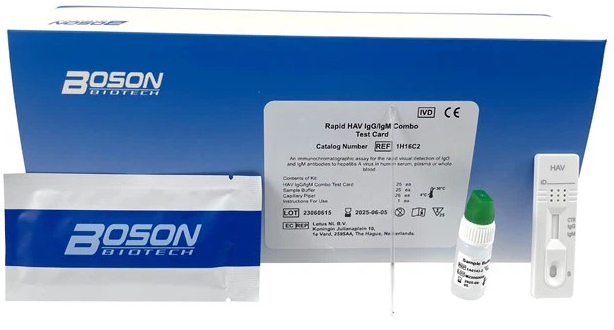 Rapid HAV IgM Test is a single use, rapid device intended for qualitative detection of IgM-class antibodies to hepatitis A virus (HAV) in serum, plasma or whole blood samples